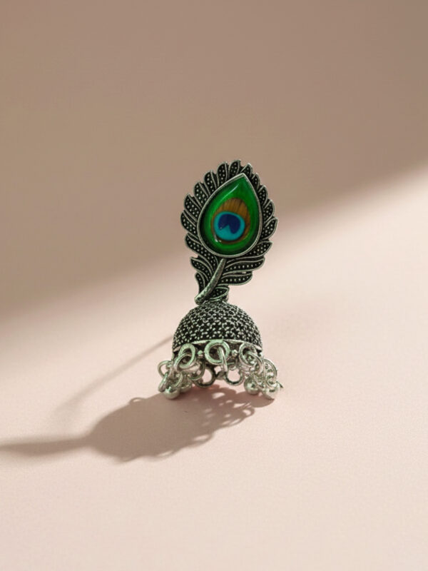Sliver Peacock Feather Jhumka