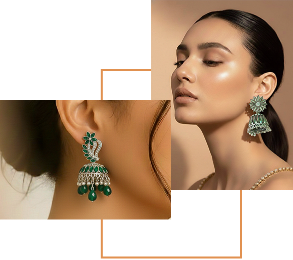 Traditional Green Dimond work Jhumka