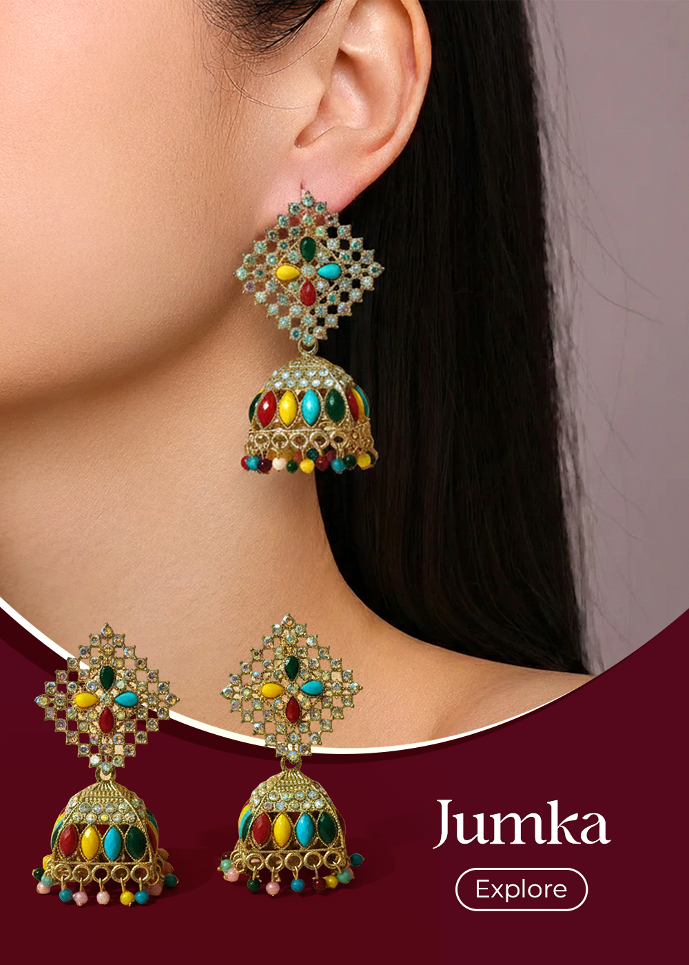 Meenakari Multi Colour Jhumka